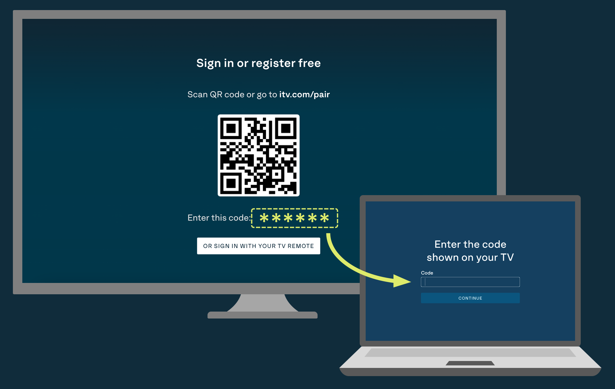 1. You’ll need to use a computer, tablet or smartphone for this. Open a web browser and go to: itv.com/pair.